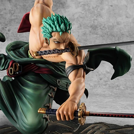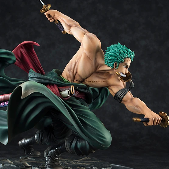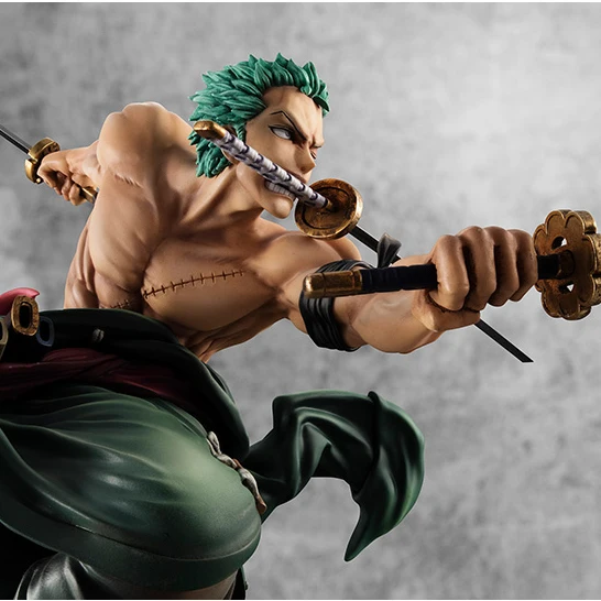Aus der Kult Anime Serie One Piece kommt noch ein weiterer Charakter, den die Leute lieben. – Roronoa Zoro, der Piraten Jäger. Er will einmal der größte Schwertkämpfer auf Erden werden, als Andenken an Kuina, die einst Kinder Freunde gewesen waren. Diese Figur ist aus PVC (Polyvinylchlorid) und ca 18cm groß, die einzelnen Arme und Beine lassen sich nicht bewegen, daher ist dies eher kein Spielzeug, sondern ein Sammler Stück oder sogar ein Dekorativer Aussteller.